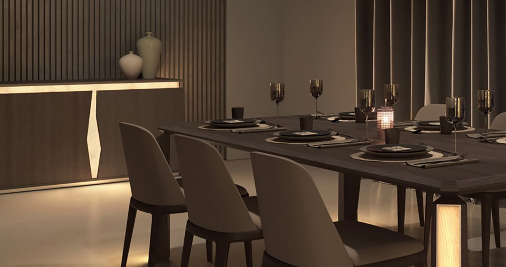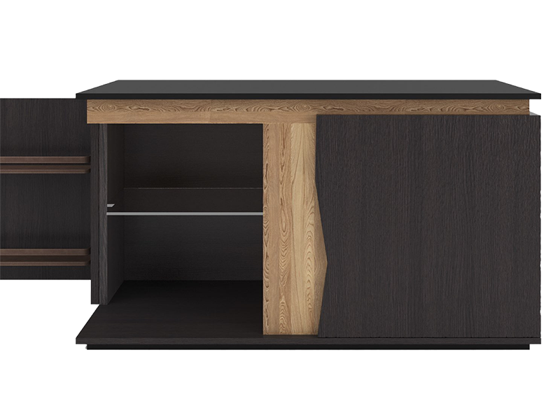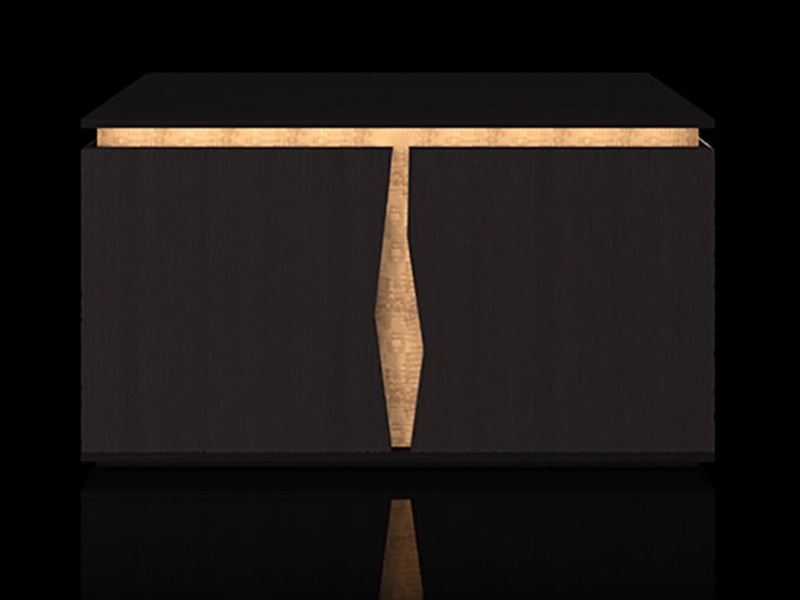 La matericità e la scultoreità del legno scolpito esterno crea un elegante contrasto con l’illuminazione del Brightwood® al suo interno, celato dalla caratteristica fessura centrale che rende la madia Beatrice un pezzo unico nella sua forma.